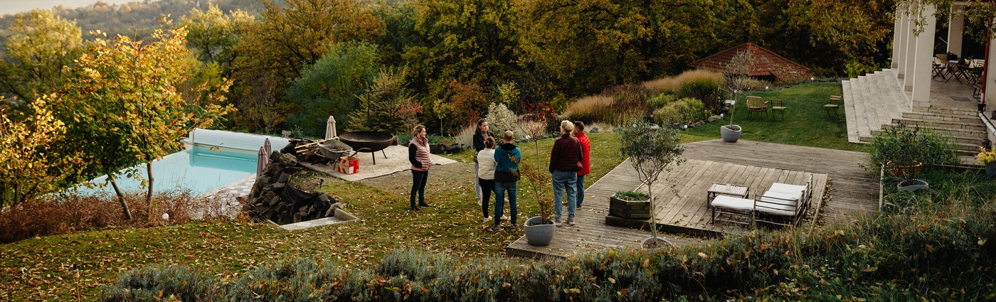 Az öt hektáros birtok a Börzsöny szívében, panorámás kilátással a Dunakanyarra – ideális esküvők, privát események, workshopok, elvonulások számára.